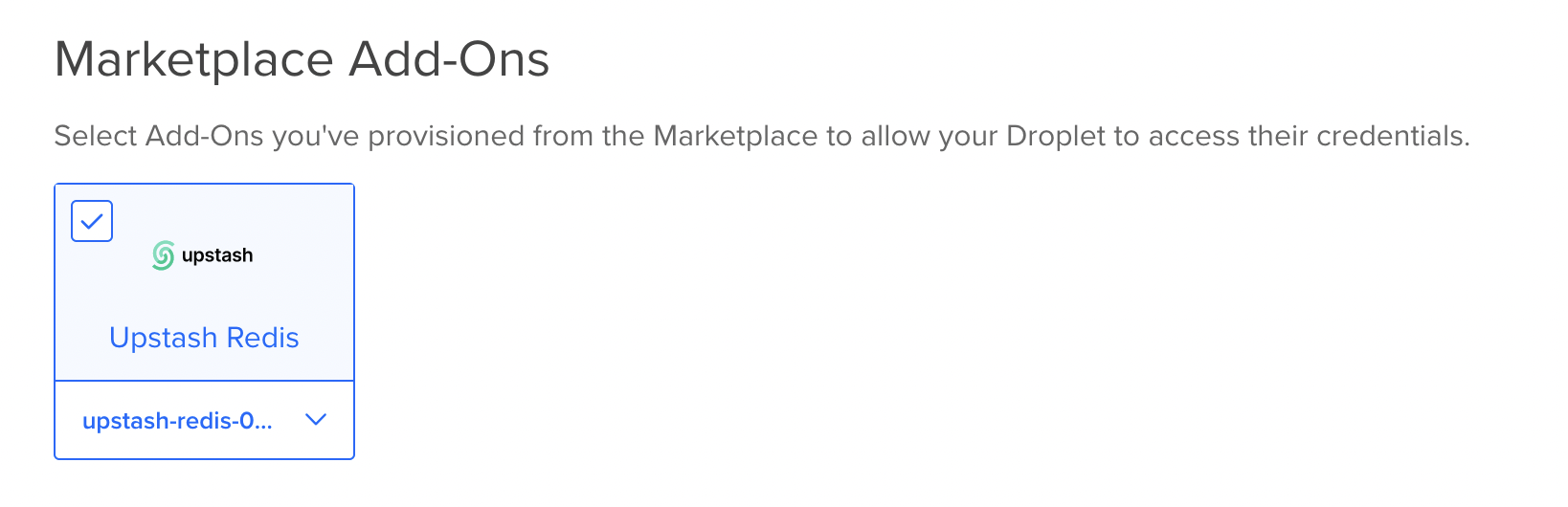 Upstash has native integration with DigitalOcean Add-On